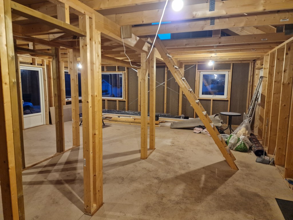 Var på en Kurdisk fest med Mahtab på lørdagen, så fikk ikke jobbet så mye da. Men fikk nå ihvertfall satt opp vegg mellom gang og soverom på søndagen.