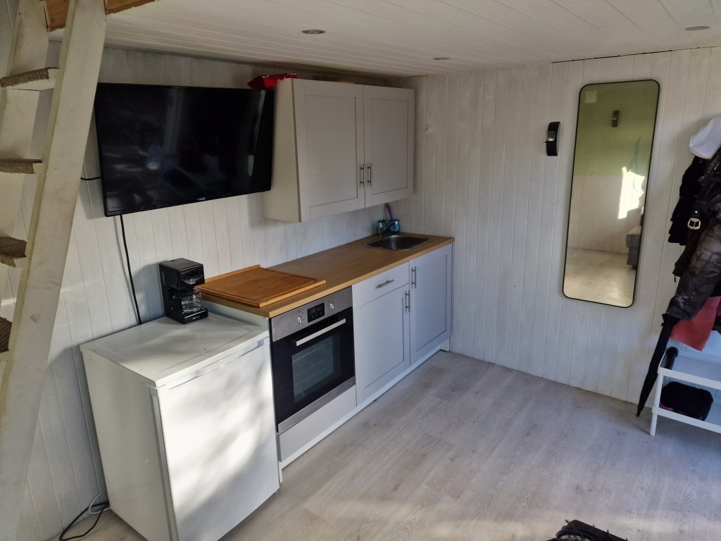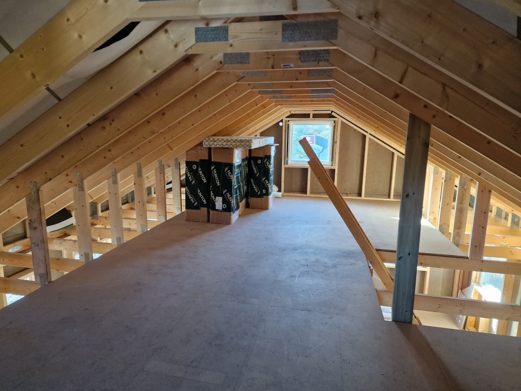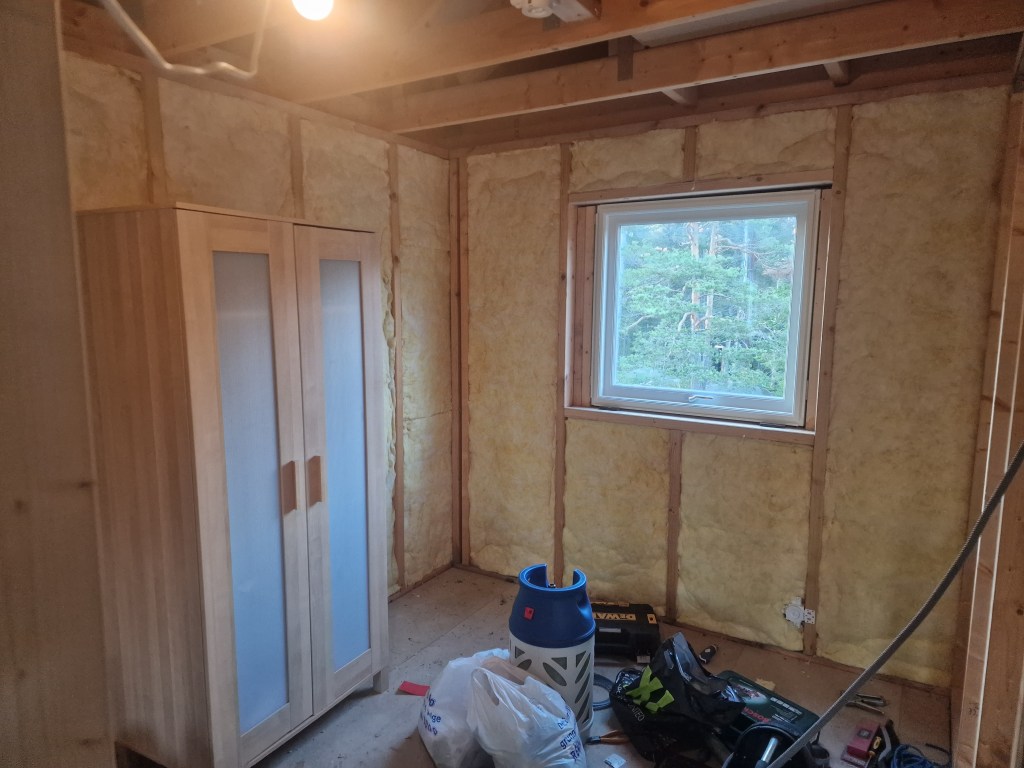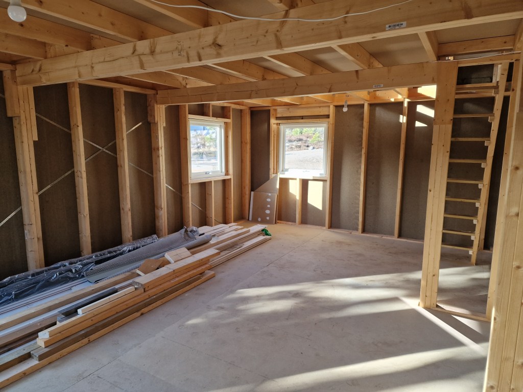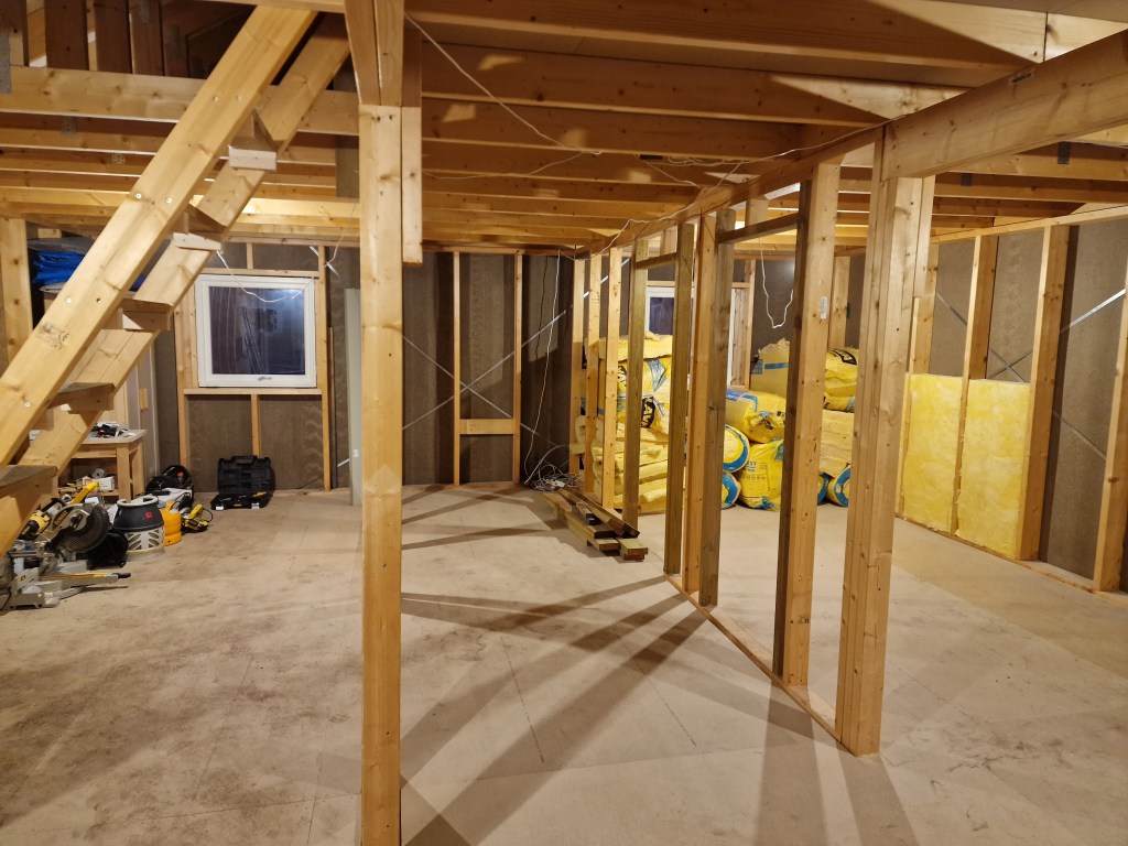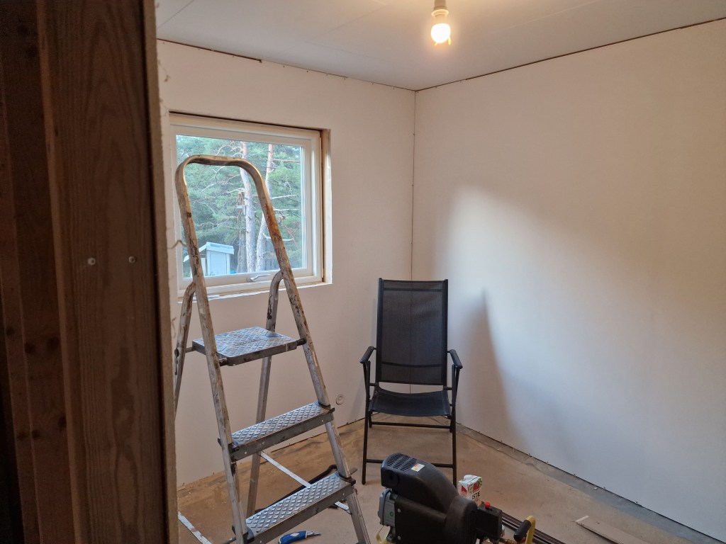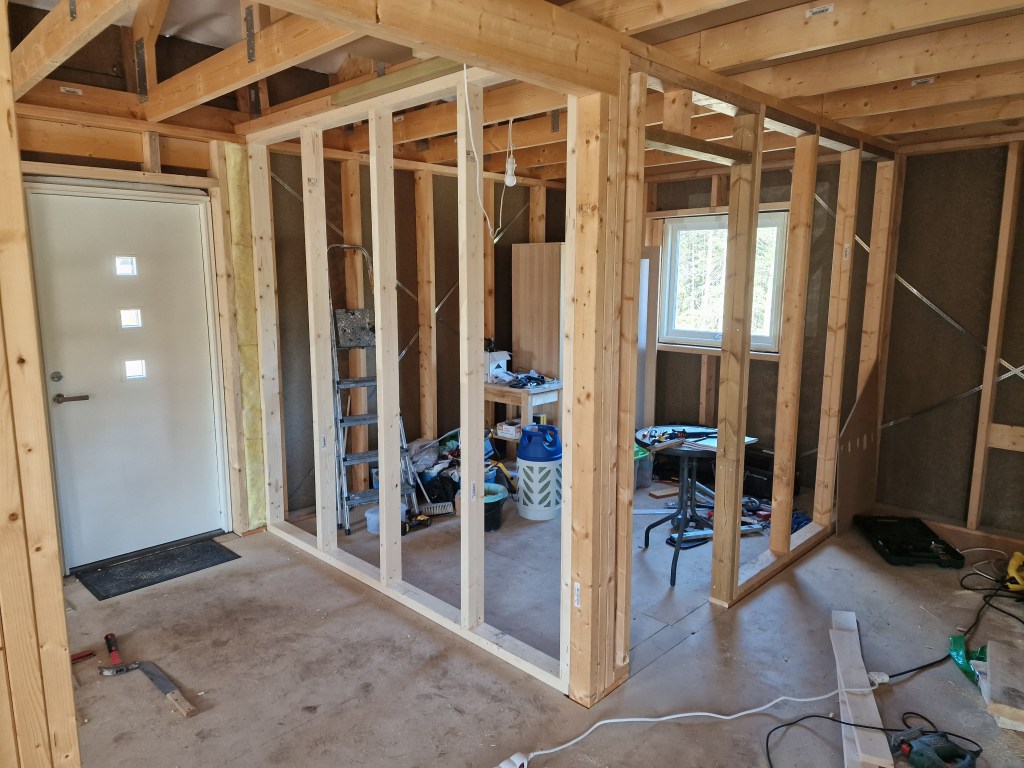 Er nå satt opp på Sov 2. Denne lille veggen til boden er også oppe.