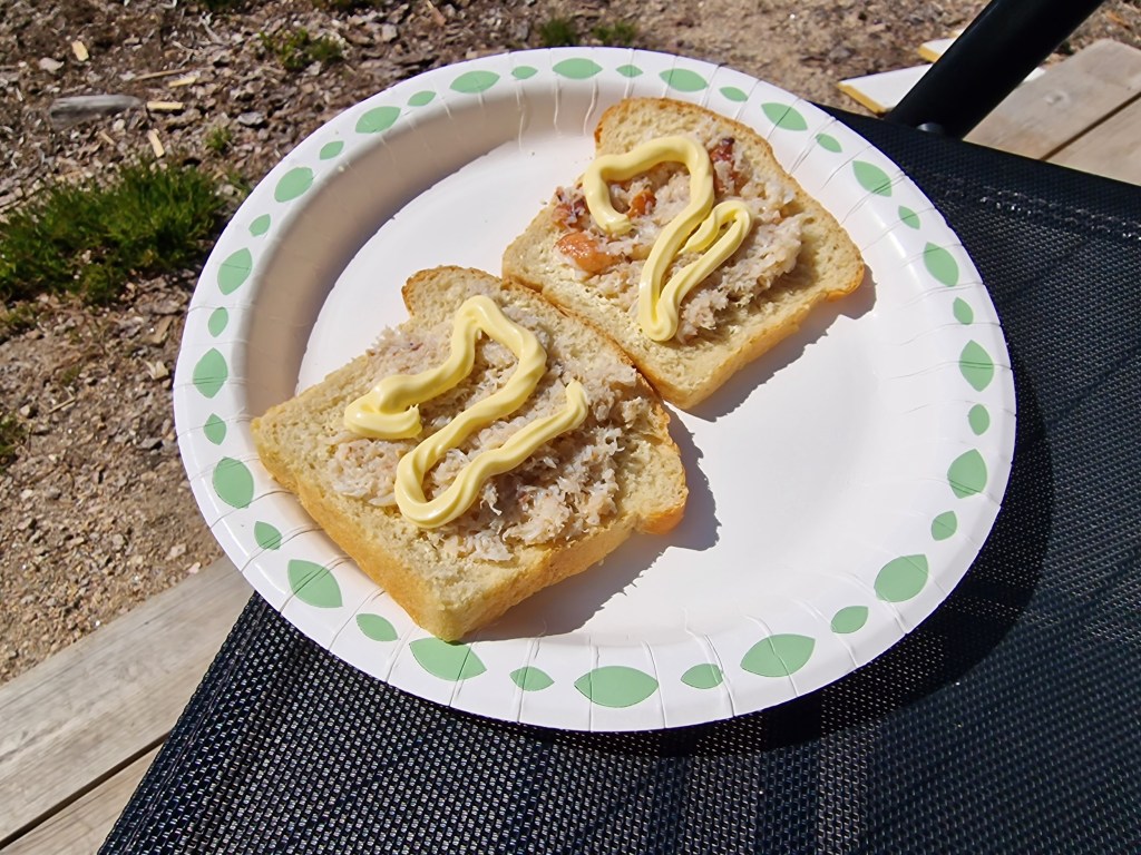 Men da kan man nyte tida på andre måter. Som å kjøpe fylte krabbeskjell på Ørebekk fisk og etellerannet. Note to self. Ikke kjøp loffen der. Den koster 90 kroner og er et par dager gammel.