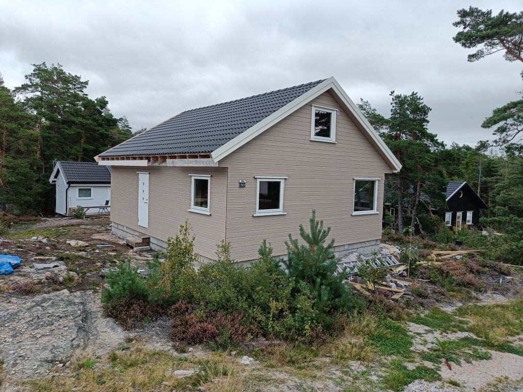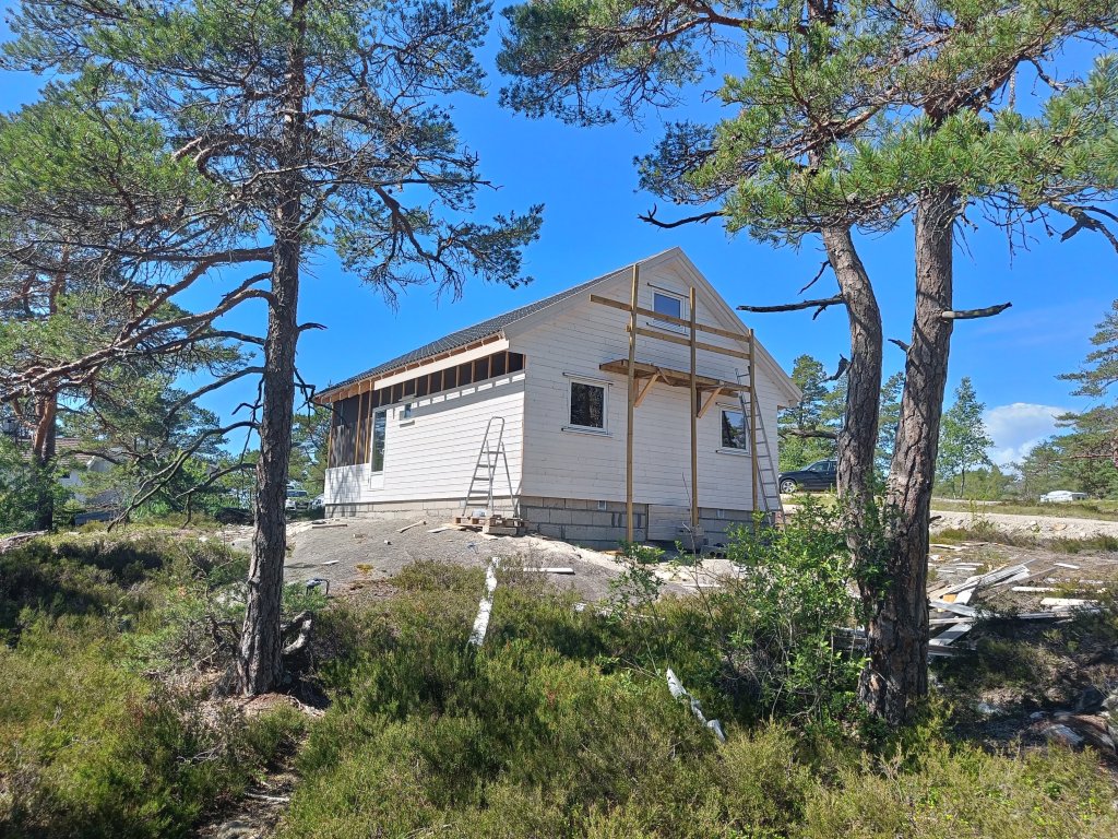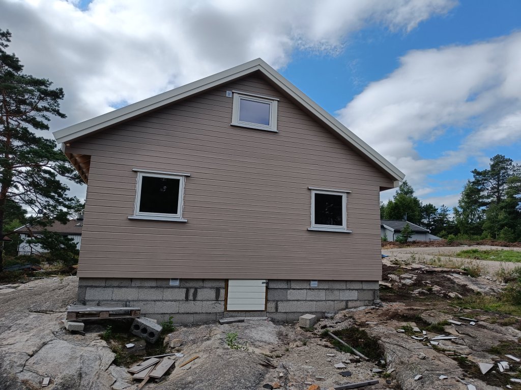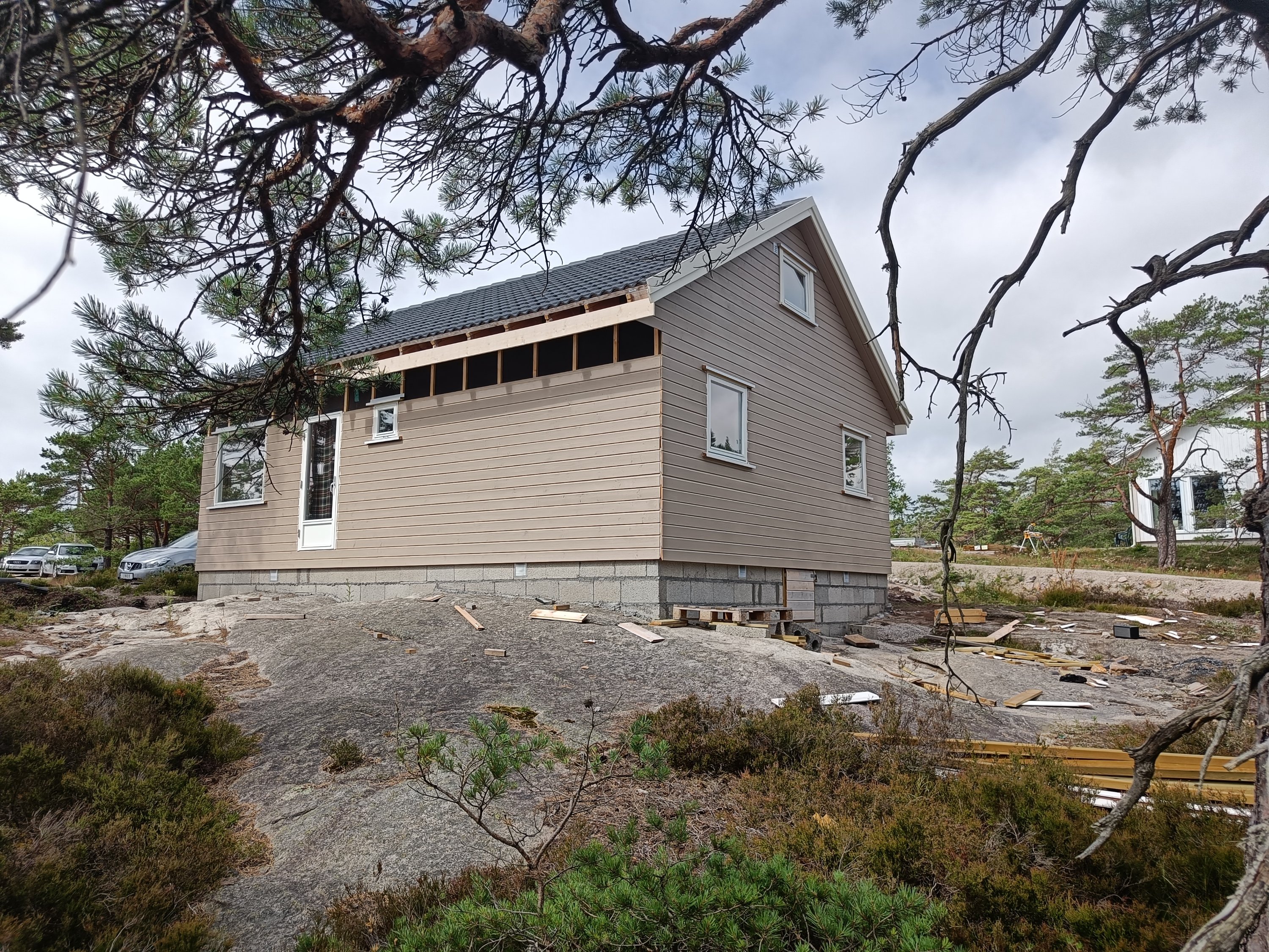 Litt bygging ble det også. Fikk satt opp litt ytterpanel, satt opp stillaset, montert noen utforingslekter samt satt inn det siste vinduet. Vilde malte litt på østveggen.