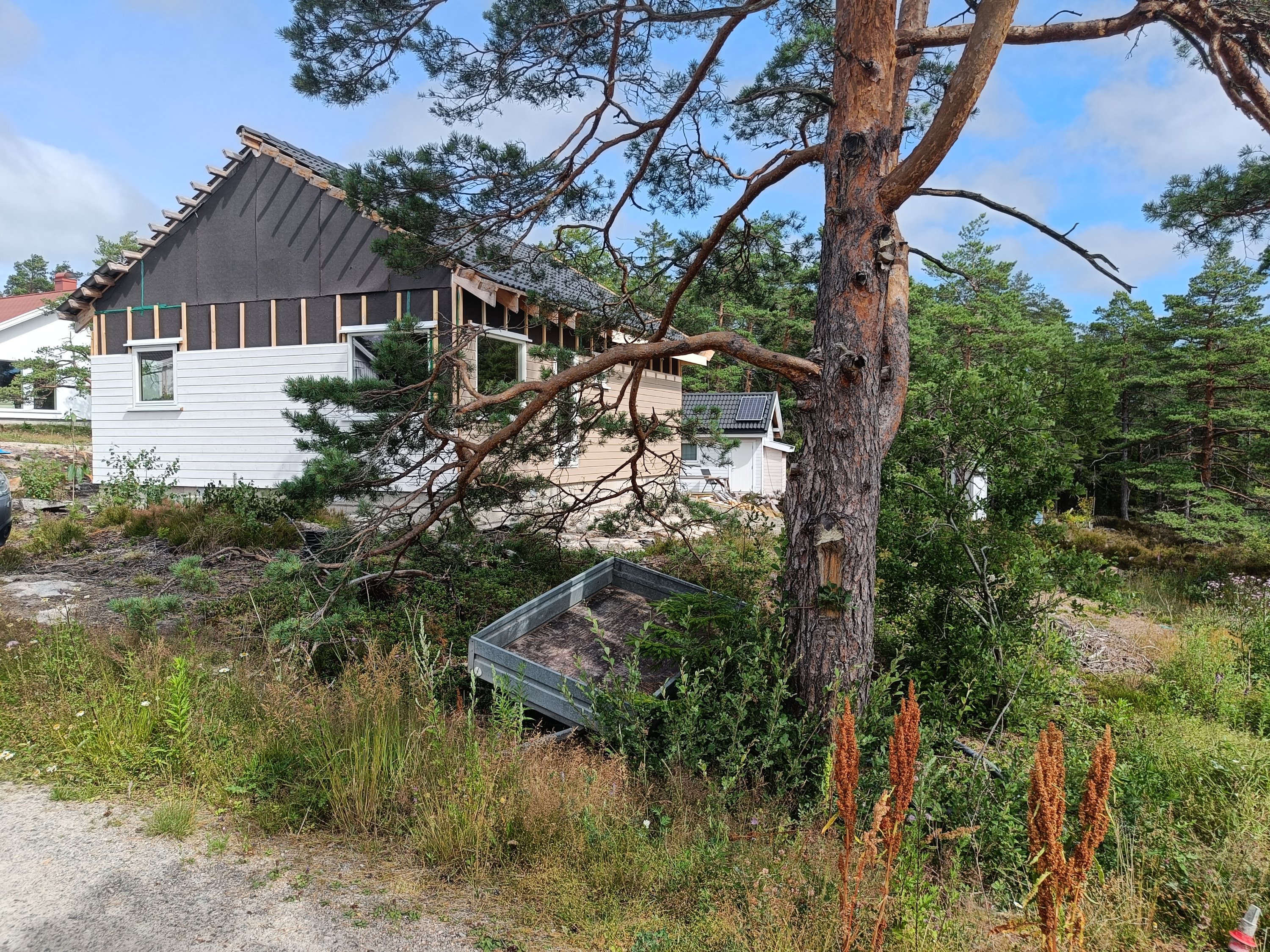 Herlig å ta bort stillaset på sørveggen. Jeg tenkte først at nå trenger jeg ikke å gå opp i høyden mer, men så kom jeg på at jeg trenger tv antenne 😳