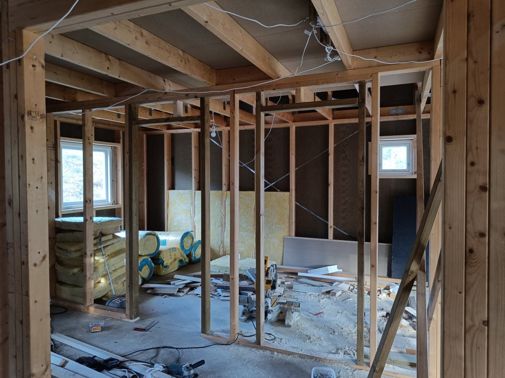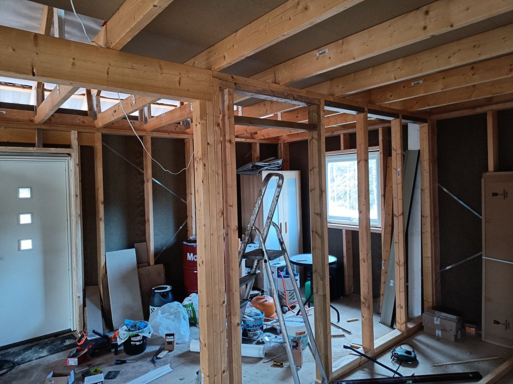 På lørdagen ble det dermed litt innejobb. Og nå er bæreveggene ferdige med dragere.