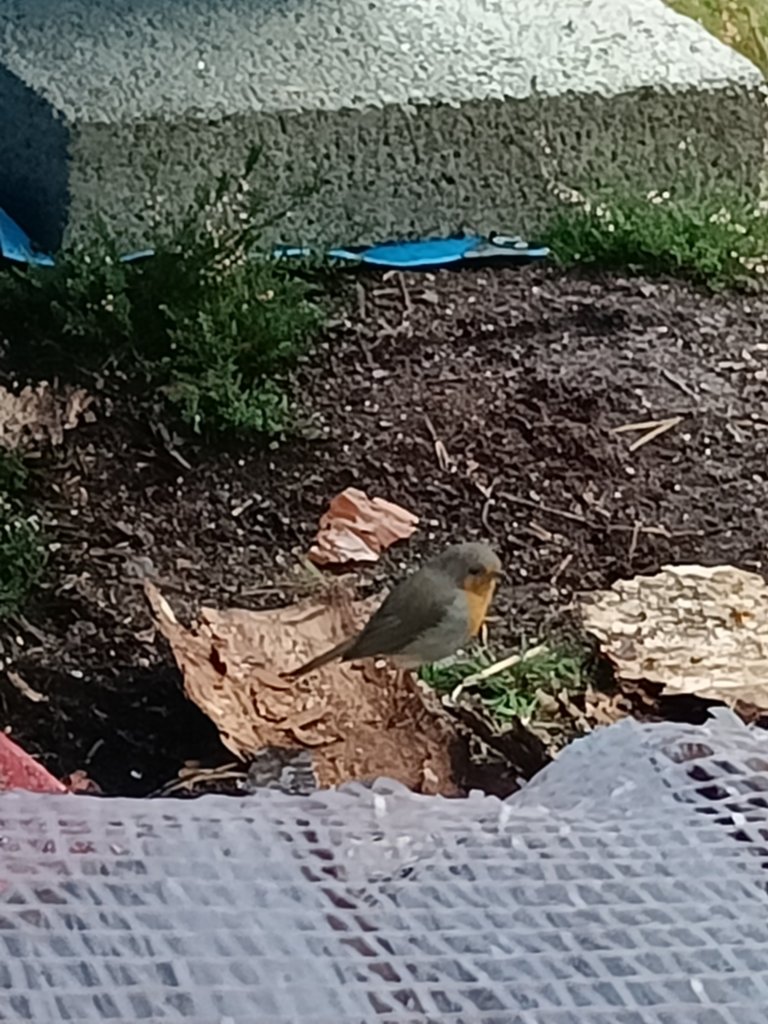 Rødstrupmoen fulgte med konstant og passet på at jeg ikke tok for mye pauser. Han ville ha insekter fra den kløyvde veden.